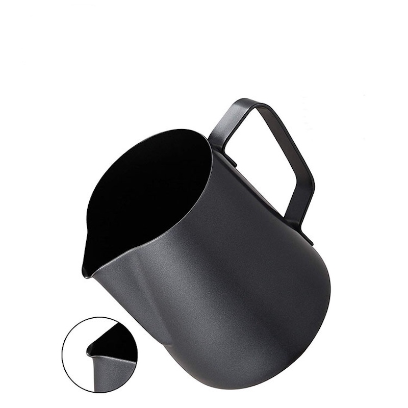 profesjonalne pomiary wewnątrz kawy latte filiżanka mleka parującego dzbanek mleka pianki dzbanek